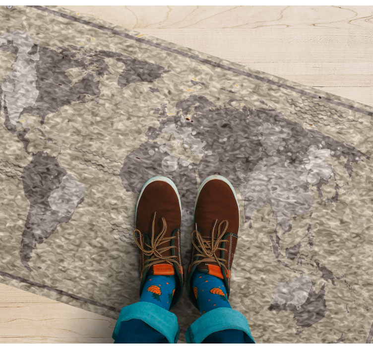 Transform your space with our captivating World map vinyl rug with global map design! This stunning piece features a beautifully crafted world map, showcasing intricate geographical details and textures in neutral colors. The design effortlessly merges style and sophistication, making it perfect for any room in your home.