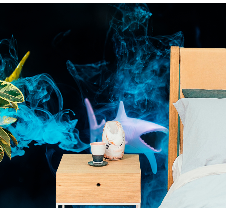 Immerse yourself in the vibrant depths of the ocean with our Animals wall mural colorful shark illustration. This stunning design features a captivating shark amidst swirling water and ethereal smoke, creating a breathtaking photomontage that embodies the beauty of sea life. Dive into the underwater world where marine wonders come alive, making it a perfect addition to any space that craves a touch of adventure!