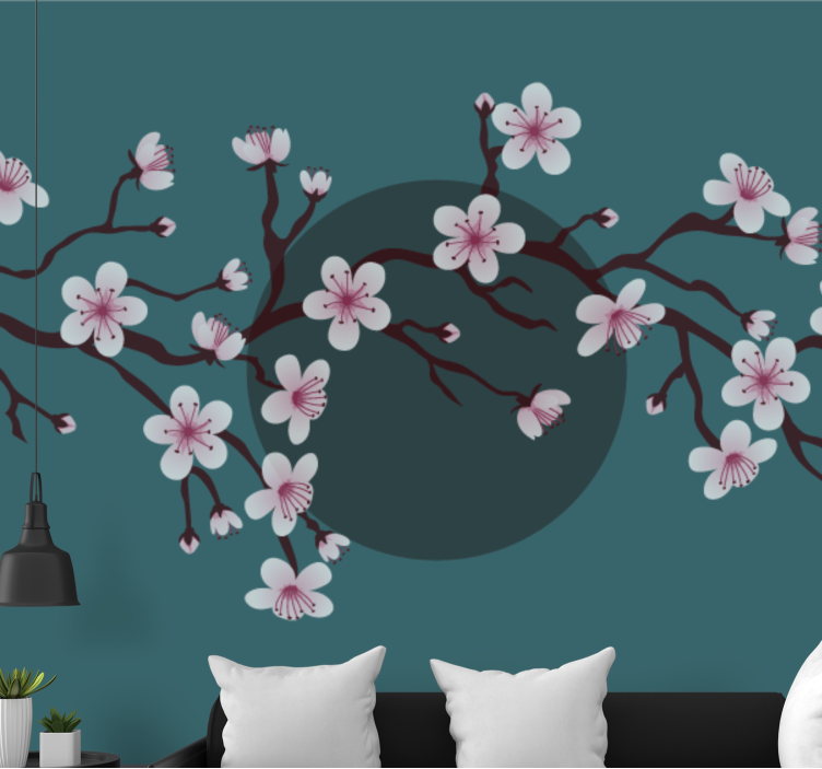 Transform your space with our stunning Flower wall mural blossoming cherry branch. This captivating design features delicate cherry blossoms elegantly cascading from a cherry tree branch, evoking the serene beauty of nature. The illustration beautifully integrates natural elements with its soft pink flowers, creating an inspiring Asian aesthetic that breathes life into any room!