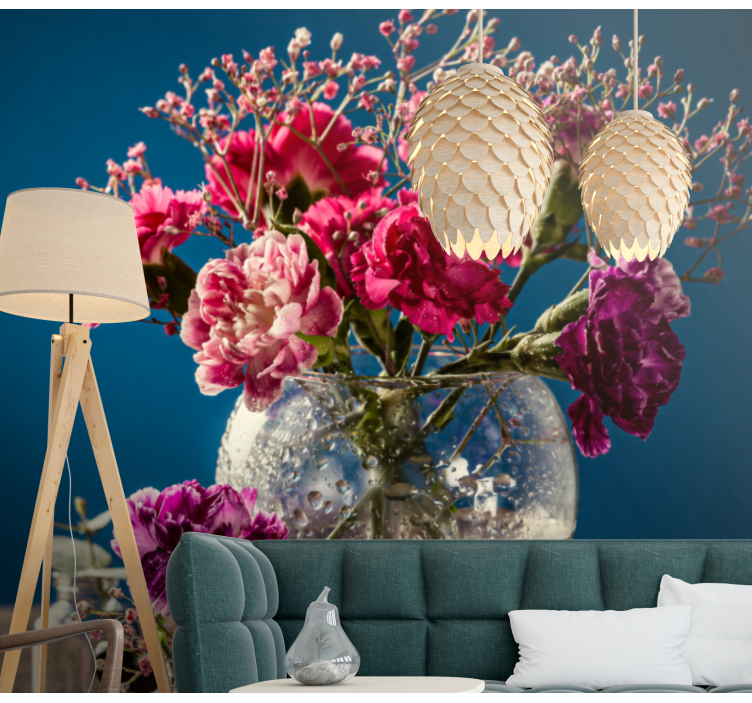 Transform your space with the stunning Flower wall mural lively bloom arrangement, an exquisite design that captures the essence of nature's beauty. Featuring a vibrant display of clove, glass, and a delightful assortment of flowers including carnations, this mural creates a captivating floral backdrop. The intricate details of flora and vase elements, complemented by delicate droplets, evoke a sense of freshness and tranquility, making it a perfect addition to any room!