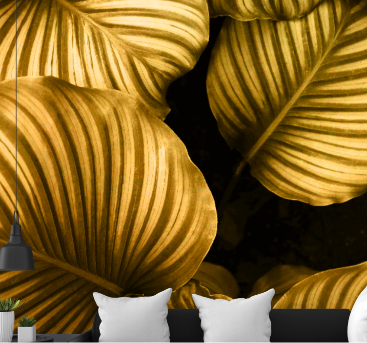 Transform your space with our stunning Flower wall mural with golden leaf patterns. This exquisite design features intricate golden leaves, seamlessly blending tropical elements and nature-inspired textures. The vibrant hues and detailed graphics create an enchanting atmosphere, making your walls a true work of art!