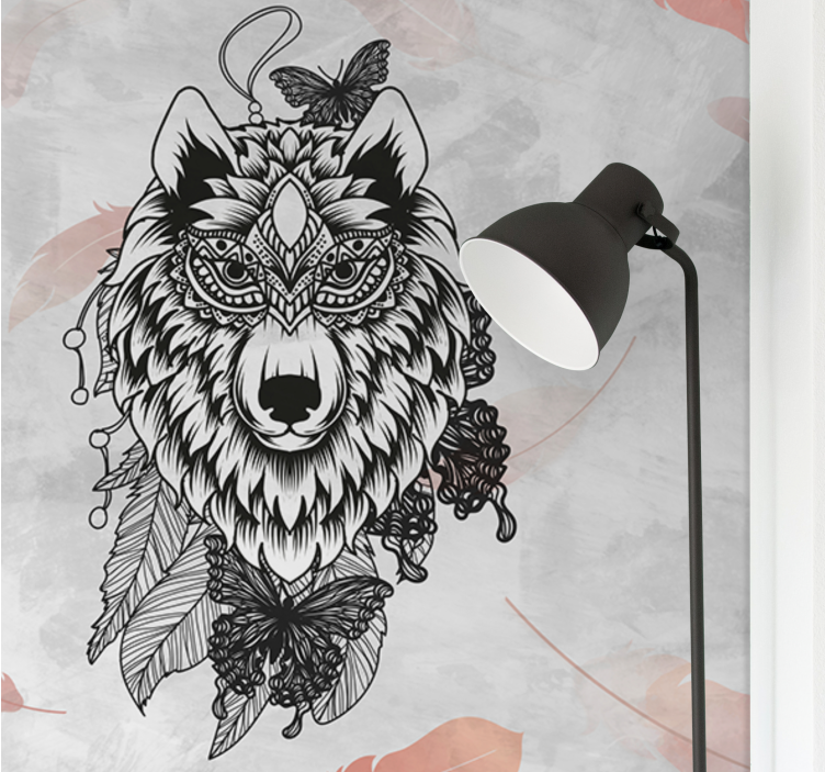Transform your teen's bedroom into a wild sanctuary with our stunning Wall mural teen bedroom wolf art decor. This captivating design features a fierce masked wolf surrounded by lush leaves and butterflies, encapsulating a bohemian vibe that brings nature indoors. The dynamic interplay of wild animals and natural elements creates a mesmerizing atmosphere, perfect for inspiring creativity and adventure in your teen's space!