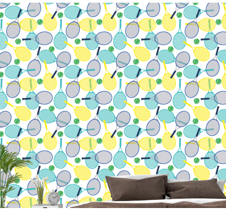 Transform your home decor with the Colorful Rackets Patterns Teenage Bedroom Wallpaper. Order now and experience the difference!