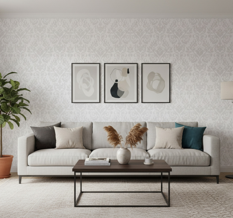 Living area wallpaper grunge damask design